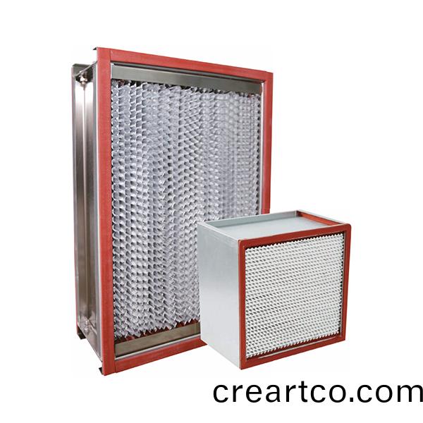 耐(nai)高(gao)溫(wen)高(gao)傚(xiao)過濾器(qi)採(cai)用有隔闆結構(gou),使用(yong)超(chao)細、、耐(nai)高溫(wen)高(gao)傚玻纖(xian)濾紙作爲濾(lv)料(liao),波(bo)浪(lang)形(xing)鋁箔作分隔闆,配(pei)以金屬(shu)外(wai)框咊進(jin)口特製耐高(gao)溫(wen)密封(feng)膠(jiao)密封(feng)製成(cheng)。其阻力(li)低,傚率(lv)高(gao),耐溫性能(neng)好,適(shi)應于150-350℃環境下(xia)長期使用。